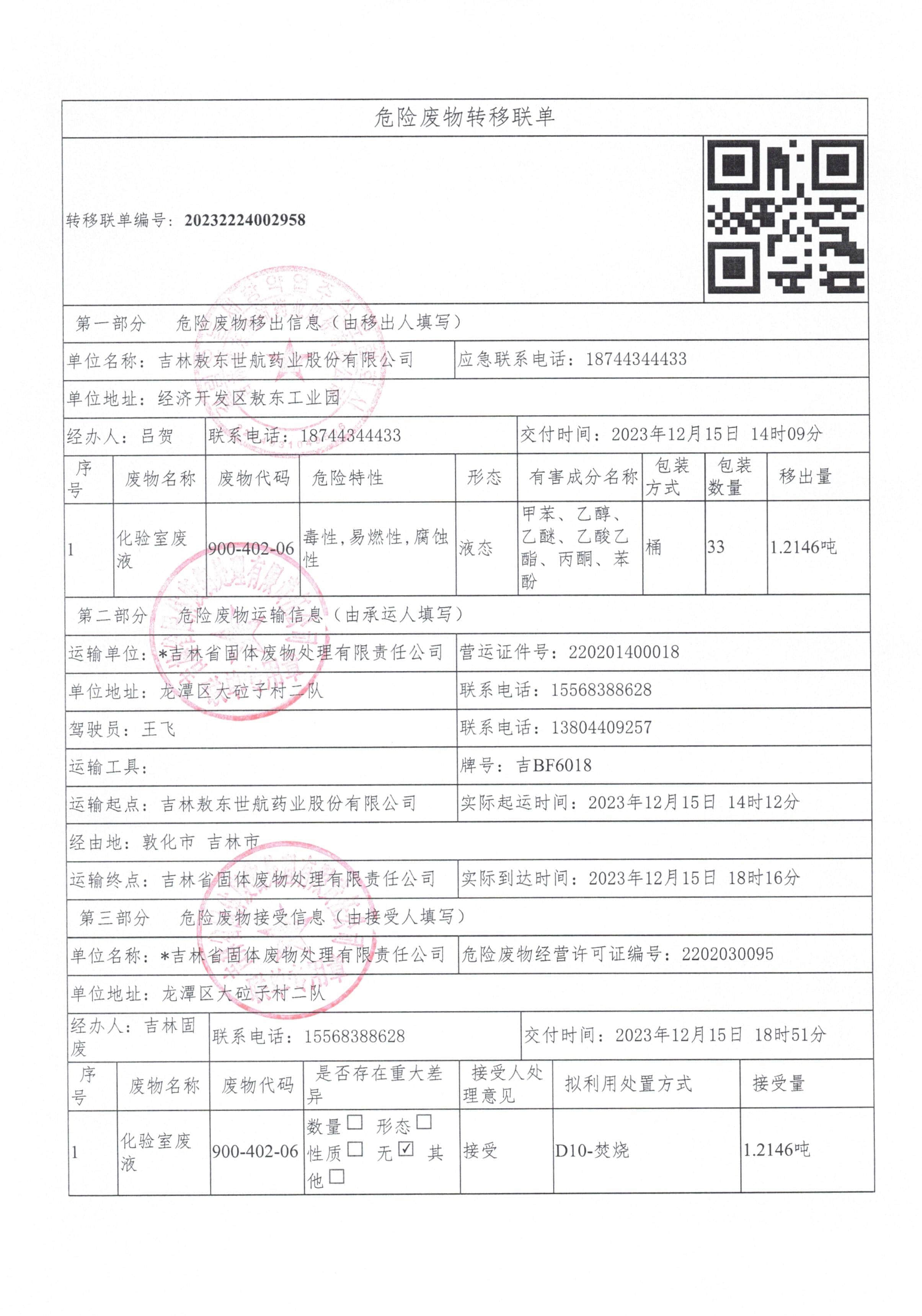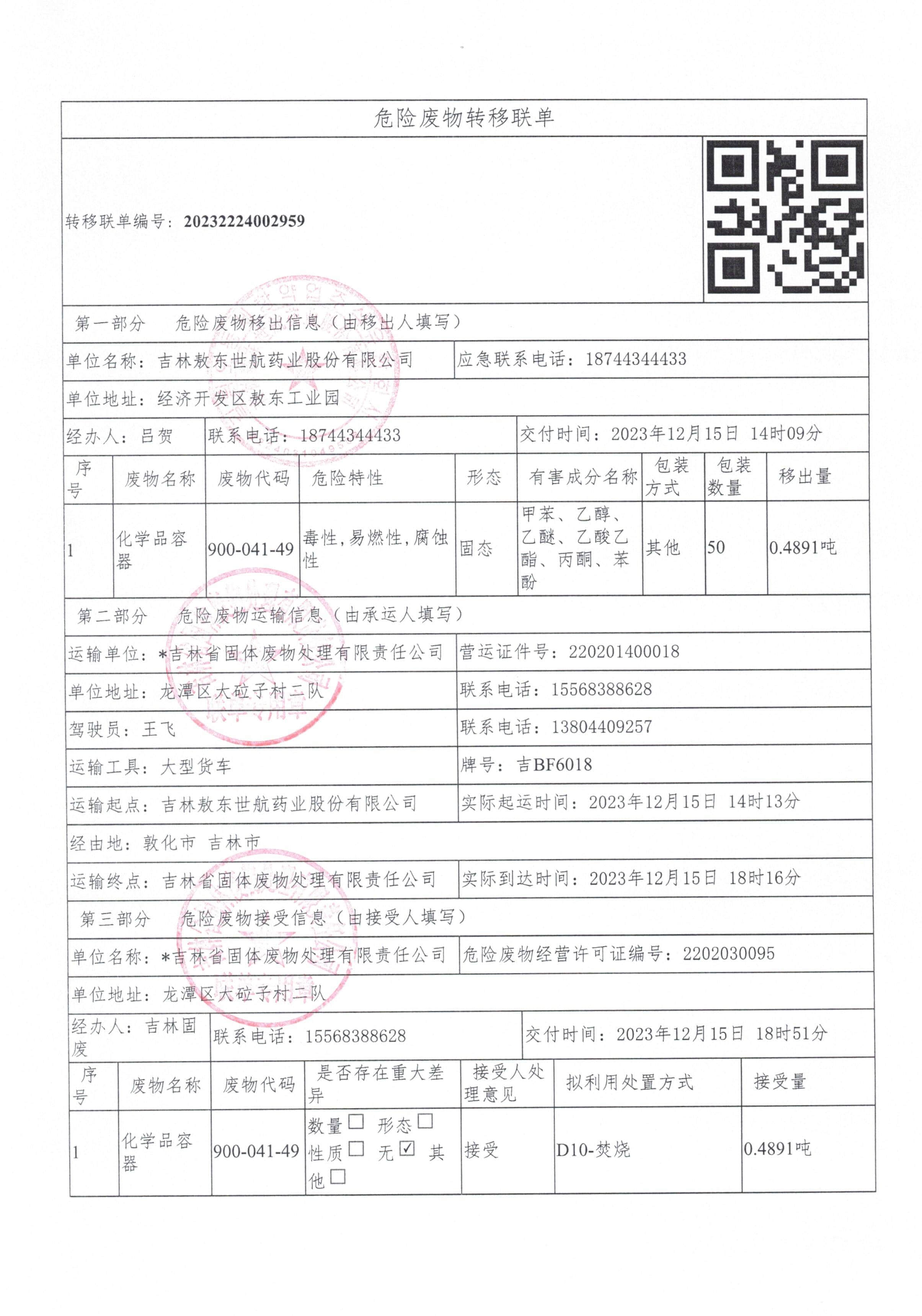 2023年危險廢物轉(zhuǎn)移聯(lián)單